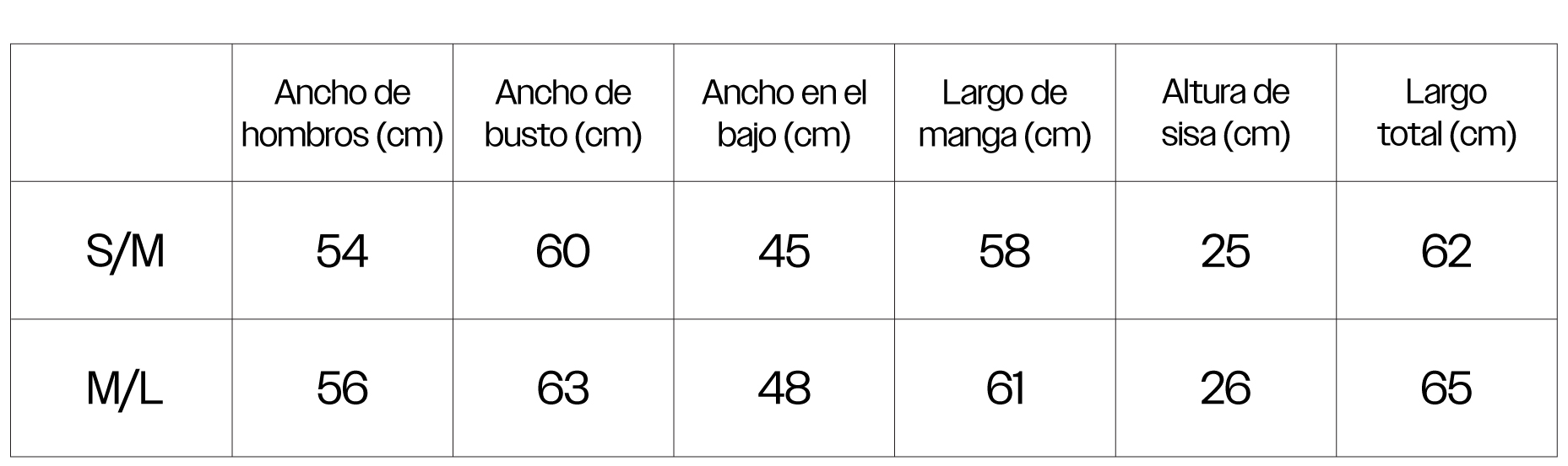 Nuestra modelo mide 173 cm y tiene puesto el talle M/L (todas las medidas estan planteadas en plano, para saber el contorno, multiplicar los anchos x 2)